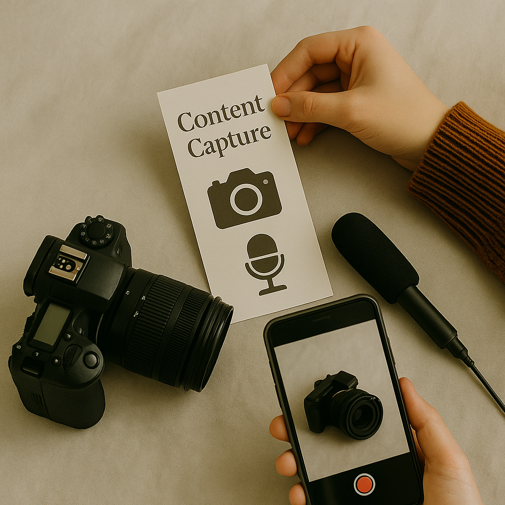 Reportages photo, tournages vidéo et enregistrements audio/voix-off pour raconter ton histoire de manière vivante et authentique.